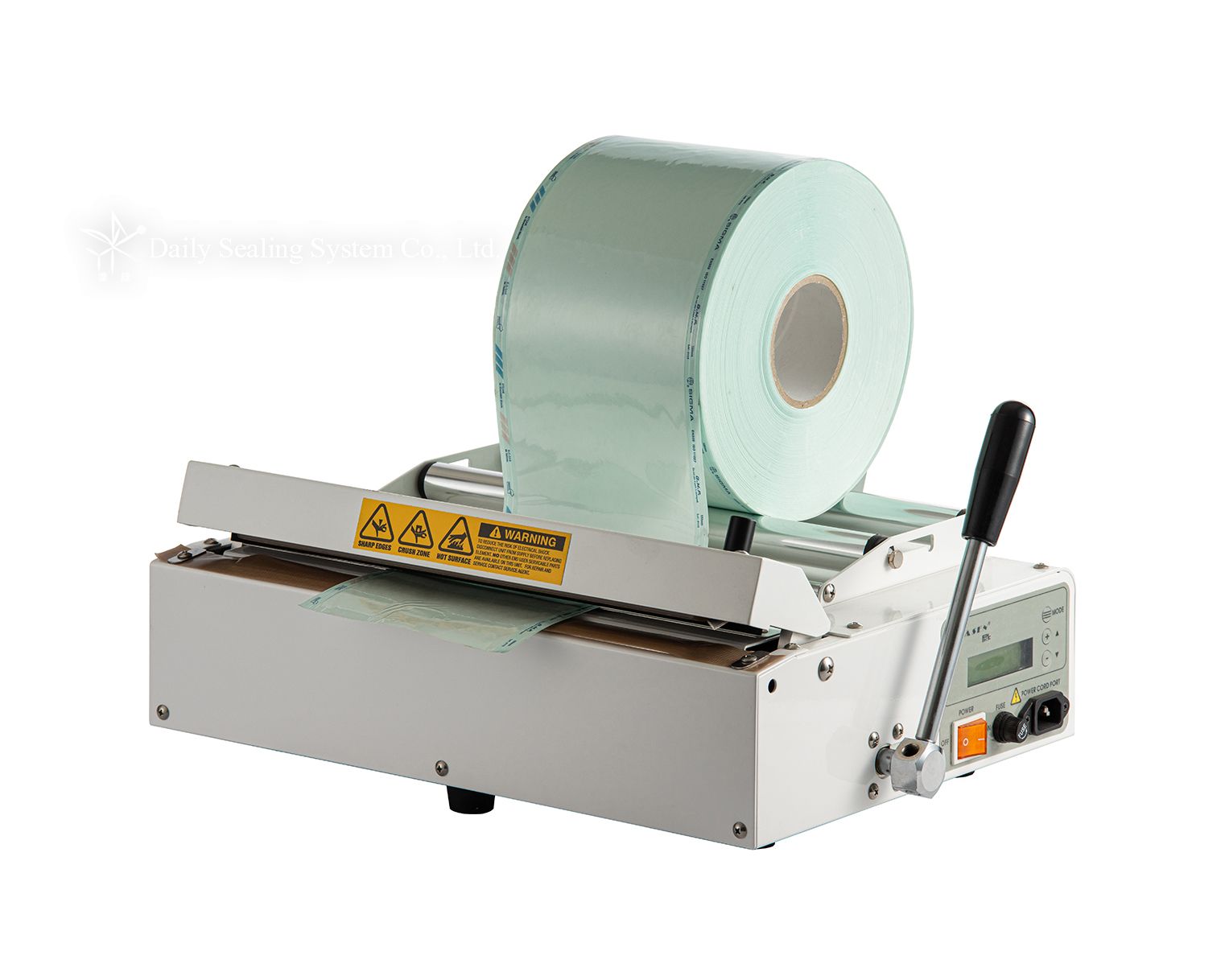 • Offering complete cutting device and roll dispenser of antiseptic pouches to format and cut off the bags easily. The machine measurement is small that can save the space of transportation.
